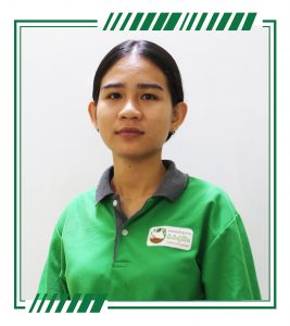 • The commitment girl named Leakena is the eldest daughter who was born in a farming family in Pursat, Cambodia. She is working as a food processing assistant at SSLA to assist in the production of chili sauce and coconut oil while she is a student studying food processing at the National University of Battambang. She enjoys listening to music and learning about new food-related topics. She aspires to work as a teacher, control officer, and inspector of food quality in the future.
