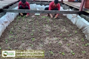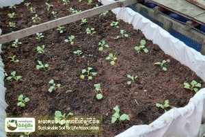 The Sustainable Soil for Life Association (SSLA) has experimented with planting seedlings, including cabbage salad and tomatoes, for the OSMOSE community project at the border between Battambang and Siem Reap Province. The purpose of this activity is to promote sustainable agriculture practices in the region. It aims to support environmental conservation, and local community development, and reduce the imported vegetables from abroad.