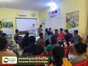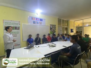 Share កាលពីថ្ងៃទី២៧ ខែកញ្ញា ឆ្នាំ២០២៤ កសិករចំនួន ៣០នាក់ បានអញ្ជើញមកពីឃុំប្រមេ និងឃុំរក្សា មកដល់ទីតាំងការិយាល័យសមាគមនិរន្តរភាពដីដើម្បីជីវិត (SSLA)។ ការអញ្ជើញមកនេះគឺជាការជួបជុំ ស្វែងយល់អំពី កិច្ចការងាររបស់សមាគមនិរន្តរភាពដីដើម្បីជីវិត និងកសិកម្មអេកូឡូសុី។ On September 27th, 2024, 30 farmers from Phum Preme and Reaksa communes visited the Sustainable Soil for Life Association (SSLA). The purpose of this visit was to learn about the works of SSLA and Agroecology. Share