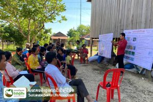 On June 13, 2024, the SSLA team trained 26 farmers (18 females) from the IPs Kouy Community in Dun Ma village, Reaksa Commune, Rovieng District, Preah Vihear Province. The training sessions covered practical skills in making advanced fertilizers such as SBN, Bokashi, EM fertilizers, and Fish Amino Acid (FAA) fertilizers. Farmers also learned how to produce biochar from rice husks, a valuable soil amendment. In addition to the training, 12 farmers received rice variety seeds for trials in Dun Ma floating area. This training empowers farmers, particularly women farmers with, the knowledge and resources to improve their yields by implementing agroecological practices.